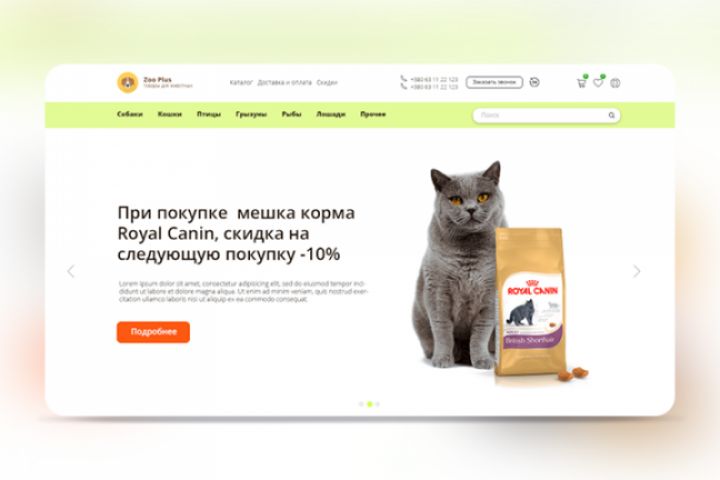 Дизайн главной страницы интернет-магазина "Zoo Plus"