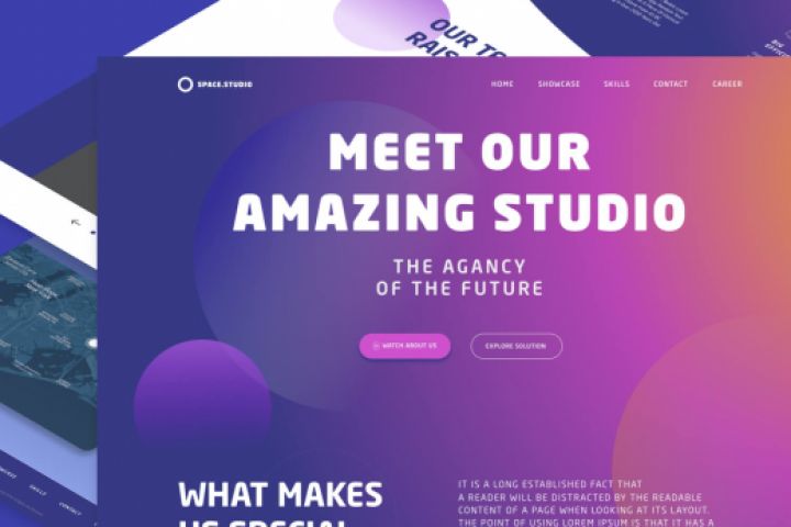 Сайт портфолио где показаны специализации, работы. Выполнен в пастельных тонах.