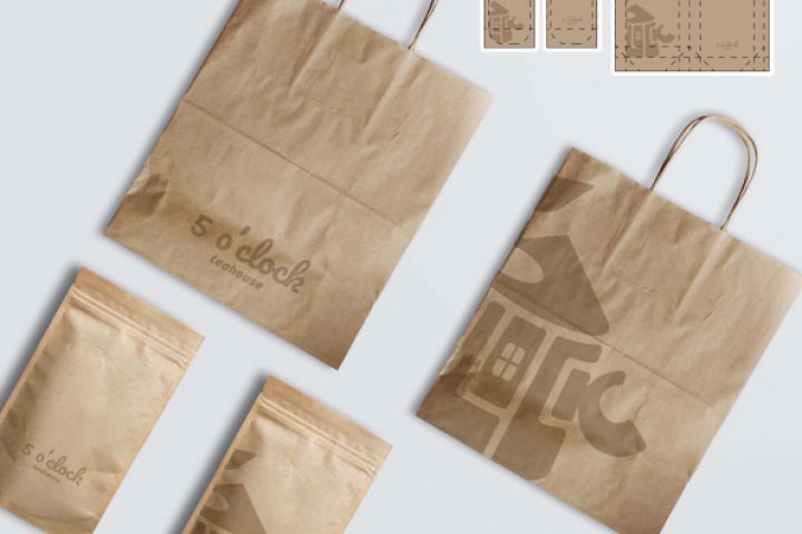 Лаконичный дизайн крафтовых пакетов и пакетов для чая выполнен с использованием логотипа, без лишних деталей