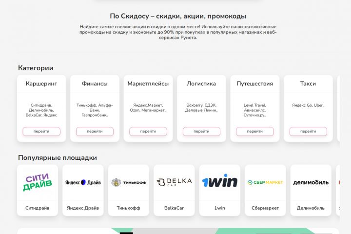 Промокоды и акции, личный кабинет, админка