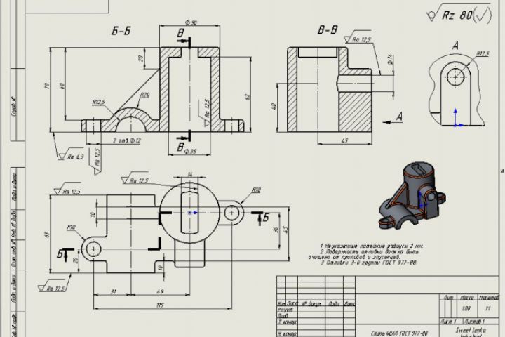 Чертеж разработан по модели, реализованной в среде SolidWorks.