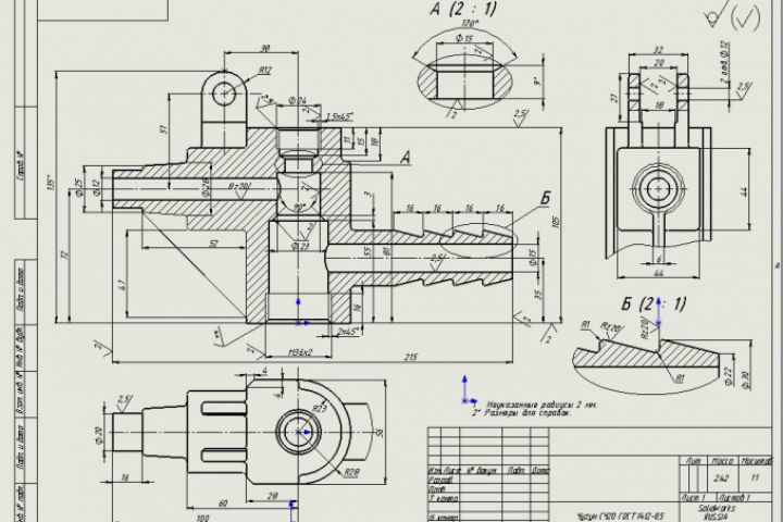Чертеж разработан по модели, реализованной в среде SolidWorks.