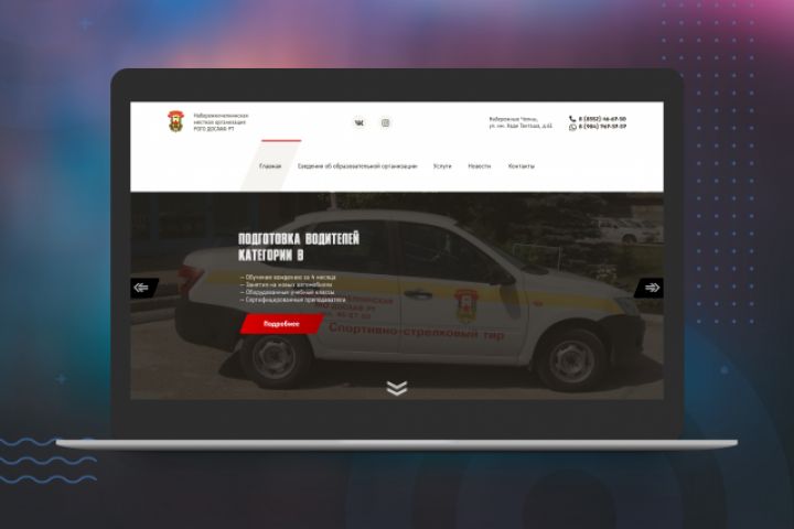 Редизайн главной страницы сайта организации, которая специализируется на обучении вождению, безопасному обращению с оружием, патриотикой и др.