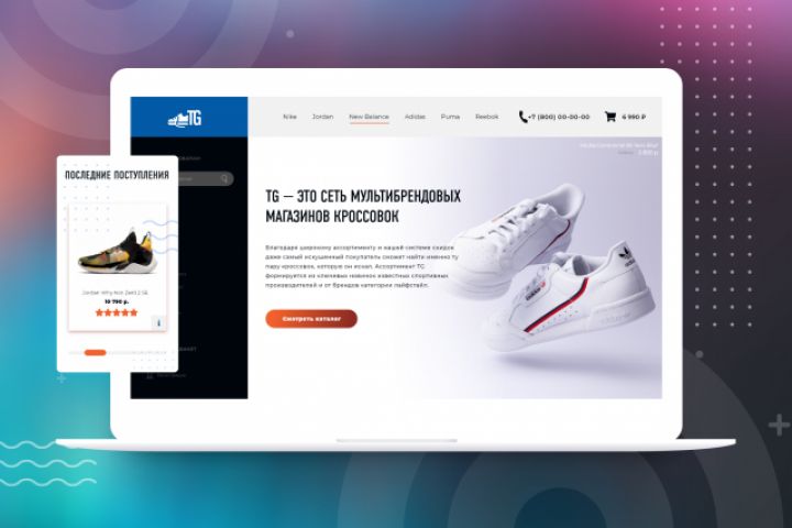 Дизайн главной страницы интернет магазина компании, занимающейся продажей кроссовок. Главные критерии — удобство и современность. Отдельное внимание уделялось дизайну мобильных версий.