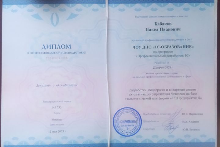 Диплом профессиональный разработчик 1С