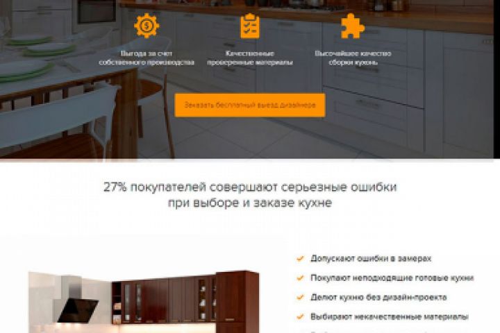 - Проработанный функционал, дает возможность отправлять клиенту фото со своими эскизами и проектами, посылать запрос на расчет кухонь различного типа и комплектации, оставлять заявку на обратный звонок и консультацию, проверять формы на правильность заполнения избегая спама.