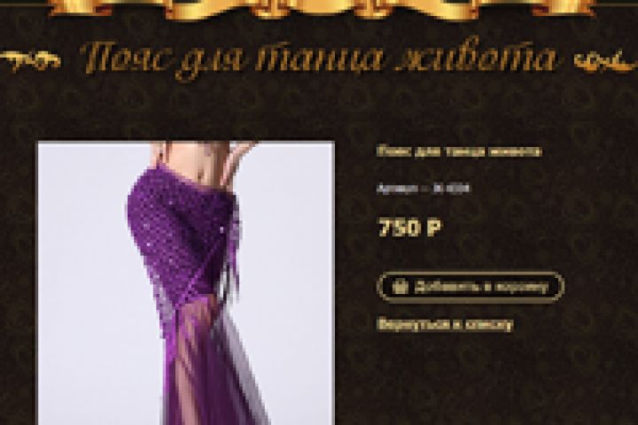 Заполнение каталога товаров на сайте школы танцев живота Luxora. Создание краткого описания для каждого товара. Работа с фотоматериалами. Всего 42 позиции.