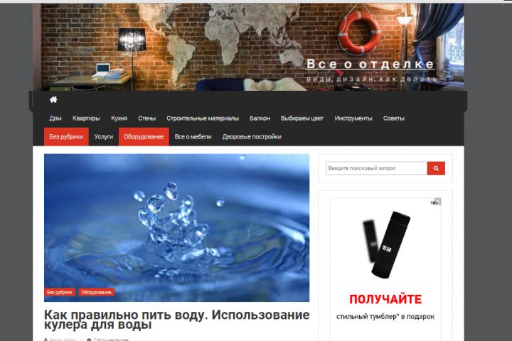 Информационная статья о правильном употреблении воды и питьевом режиме для сайта "Все о отделке"