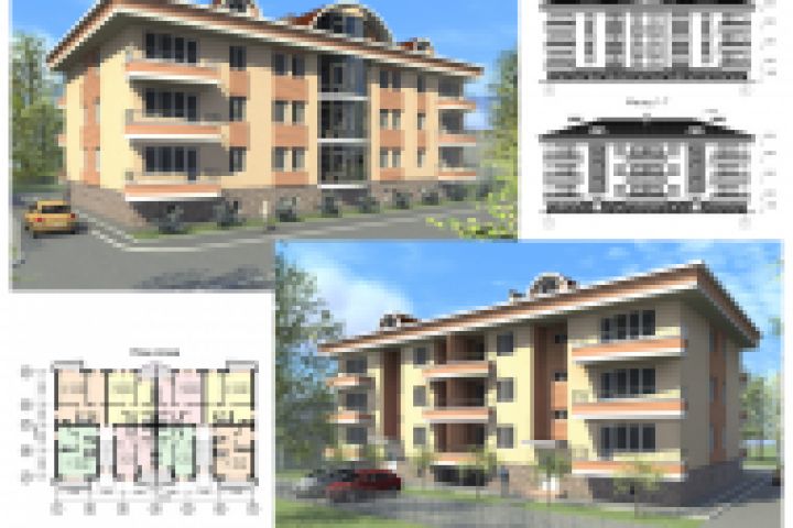 Многоквартирный трёхэтажный дом в Домодедово, Московская обл. размеры в осях 16х30 м. Одно- и двухкомнатные квартиры Предпроэктное предложение.