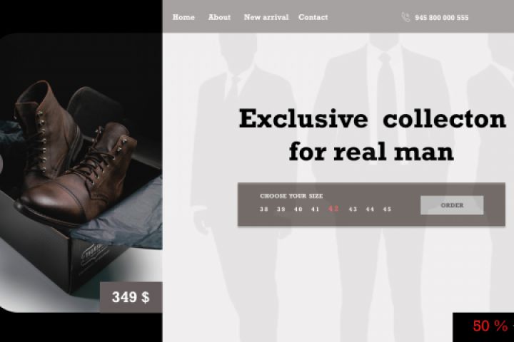 Интернет магазин эксклюзивной обуви и акссесуаров для мужчин. 1 экран.