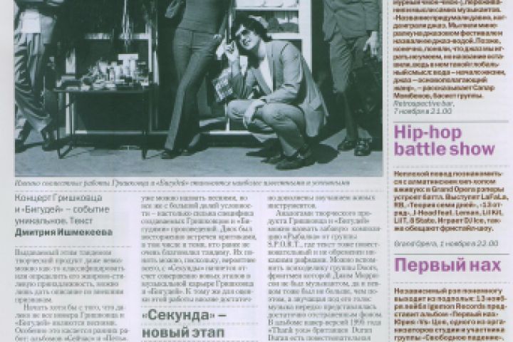 Статья о Евгении Гришковце и музыкальной группе "Бигуди"