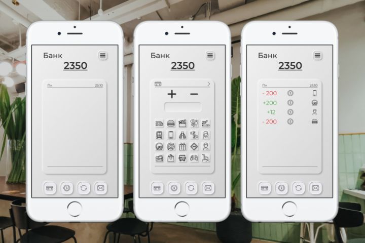 Приложение для контроля финансов Дизайн выполнен в стиле неоморфизм
