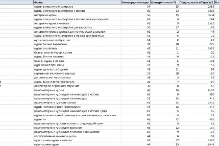 Семантическое ядро сайта. Тематика - оффлайн-курсы