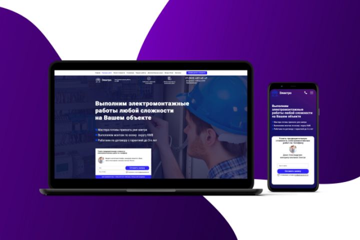 Разработан дизайн лендинга для Электромонтажных работ. Перед началом работы, выслушал пожелания заказчика. Обговорили с клиентом заполненный брифинг, утвердили прототип лениднга, далее уже поэтапно выполняли работу. На разработку необходимо было 6 дней