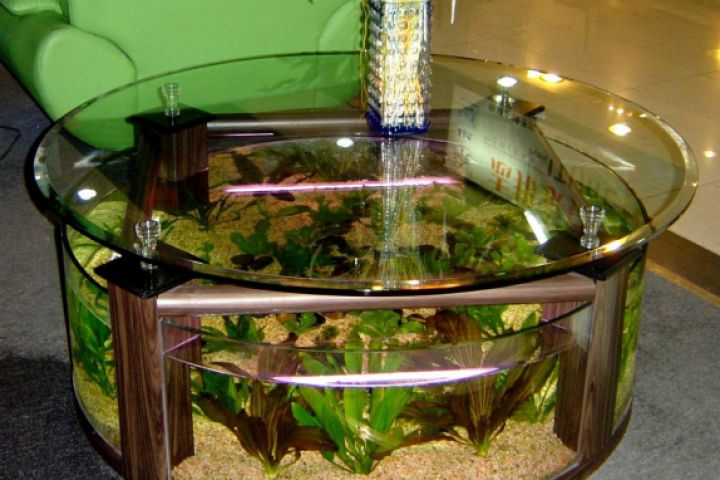 Аквариум в интерьере кухни? А почему бы и нет? Давайте окультурим монотонный дизайн, набивший оскомину стандартными формами: холодильник, плита (ах! — как она надоела), мойка… и всё время что-то готовим, жарим, парим…