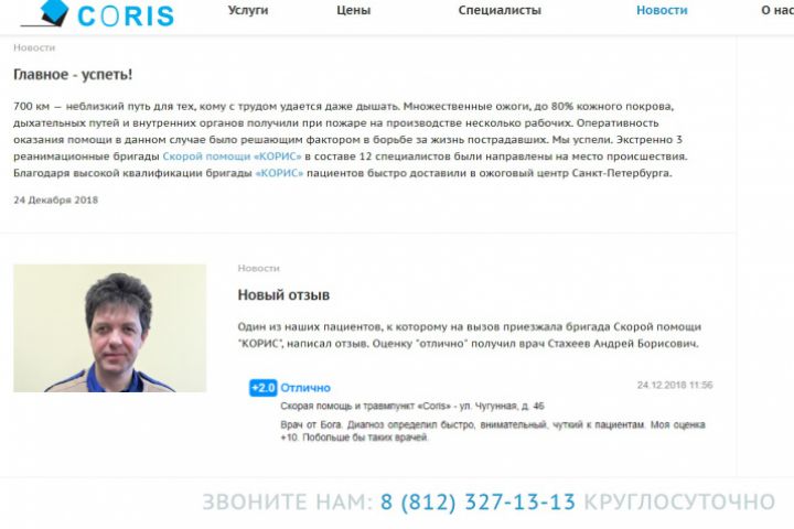 Новости для сайта частной скорой помощи, с 2017 по 2019 год