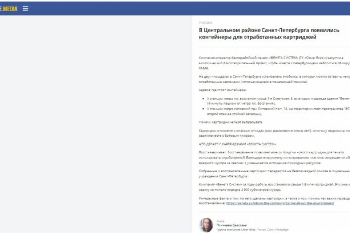 По проекту вышло более 30 бесплатных публикаций и видеосюжет на федеральном телеканале.