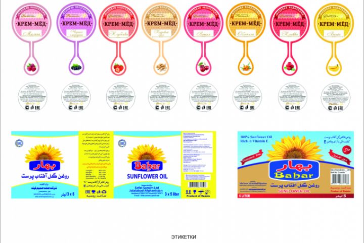 Этикетки крем-мед и подсолнечное масло