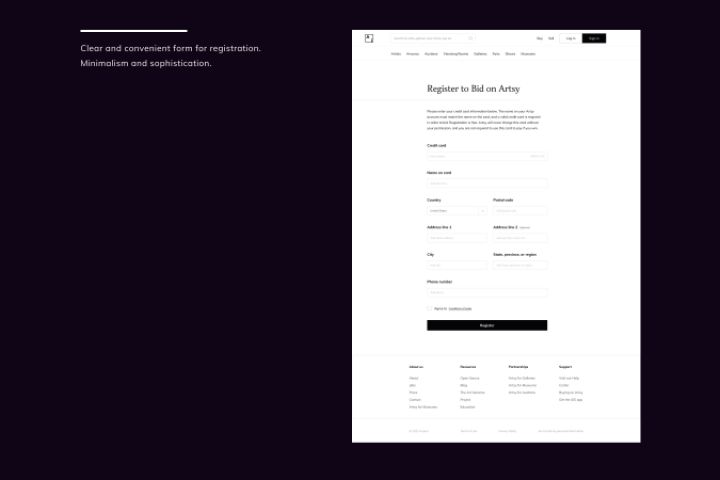 Artsy предвидит будущее, в котором каждый день будет увлечен искусством. Чтобы достичь этого, мы расширяем рынок искусства, чтобы поддержать больше художников и искусства по всему миру. Будучи ведущим рынком для открытия, покупки и продажи изобразительного искусства, Artsy считает, что процесс покупки искусства должен быть таким же блестящим, как и само искусство.