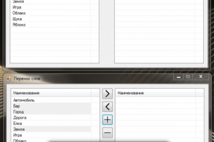 Сделал 2 программы. Первая, позволяет вводить слова, удалять и перемещать. Вторая программа, автоматически выводит и обновляет список, без возможности изменений. Работает на разных компьютерах в локальной сети.