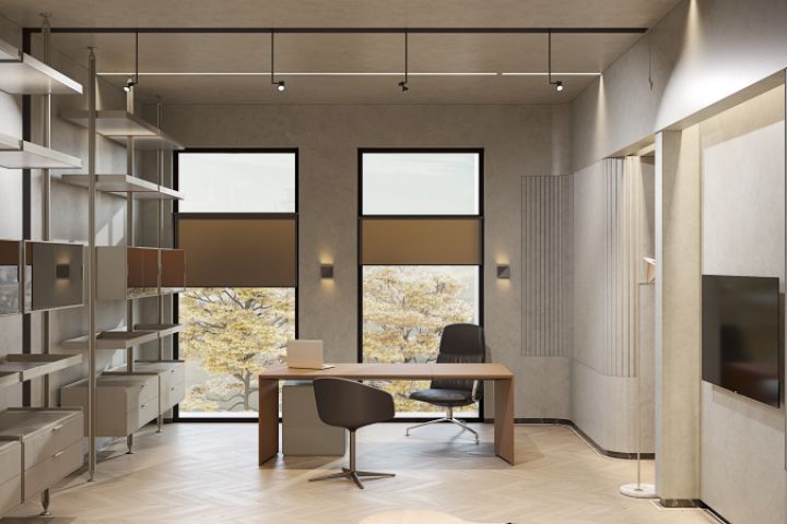 Кабинет в стилистике архитектуры K.Scarpa с мебелью фабрики Rimadesio. Объект в процессе реализации.