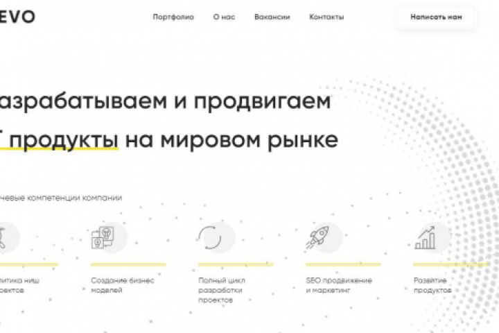 Разработка LandingPage для веб студии DEVO Адаптивная вёрстка HTML5, BootrstrapGrid, JS