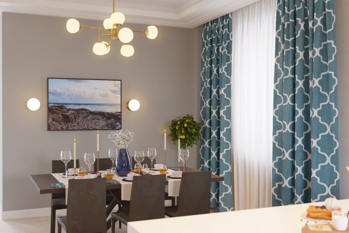 Визуализация дизайн-проекта (кухня) дома в г. Южно-Сахалинск. Обеденная зона