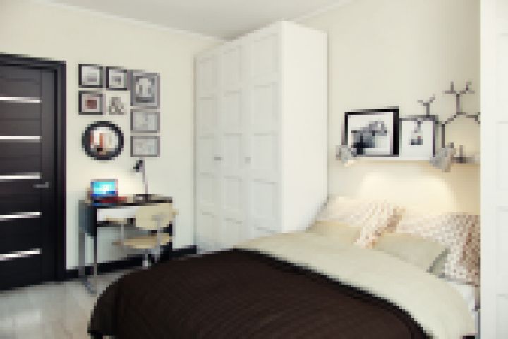 Спальня. Ракурс 2. Максимум использования пространства. Визуальное расширение помещения приемами дизайна