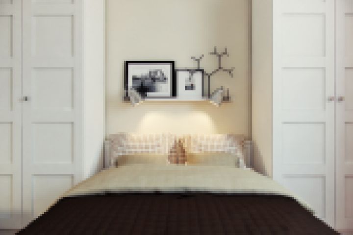 Спальня. Ракурс 1. Максимум использования пространства. Визуальное расширение помещения приемами дизайна