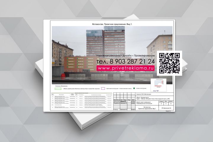 Дизайн проект вывески для согласования. Фасадная схема. Ортогональный чертеж фасажа