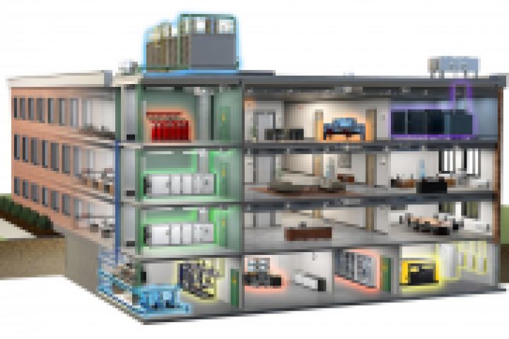 Визуализация в разрезе с инженерными системами здания. Картинка выполнена для размещения на сайте, задумка с анимацией - каждый элемент подсвечивается при наведением мышки на сайте.