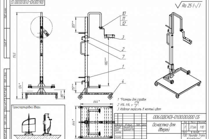 Мобильная механическая оснастка для монтажа и отдельной подсборки дверей автомобиля Hyundai Accent