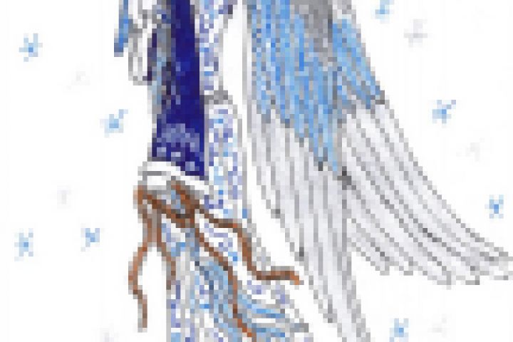 Бумага, гелевые ручки. Иллюстрация к циклу рассказов К.Кашубовского "Феи времён года". В руках у персонажа бумеранг и ленты (это по сюжету).