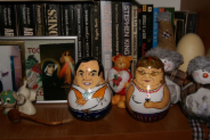 Неваляшки деревянные, расписаны портретами реальных людей. Акриловые краски, лак.