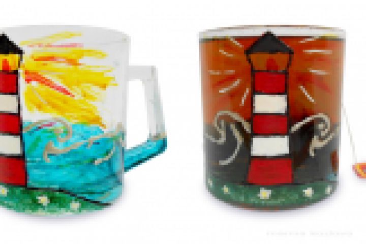 Стеклянная кружка с росписью "Маяк". Акриловые краски и фломастеры по стеклу.