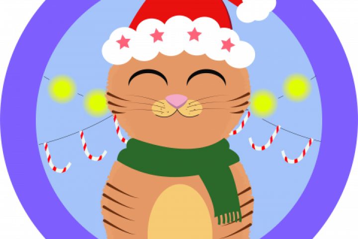 Sweet cute white kitten with blue and green eyes wearing wreath