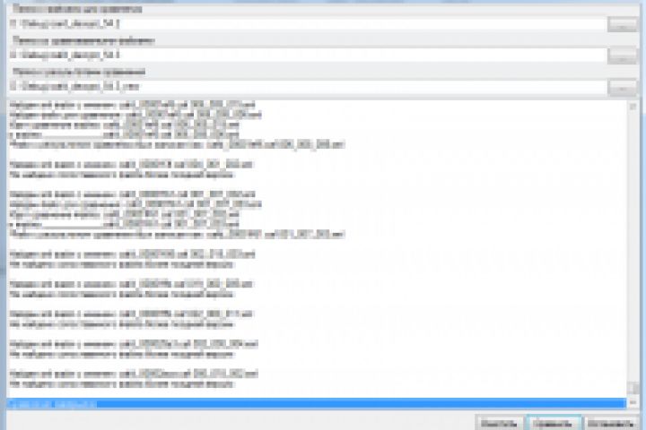 Находит для файла из первой папки аналог с наиболее поздней версией и производит изменения по алгоритму, указываемому пользователем и дописывает требуемые данные в сравниваемый xml файл.