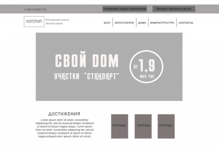 Прототип для строительной компании "Лесной пейзаж", созданный в программе Adobe Photoshop. Desktop версия.