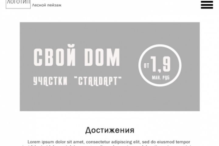Прототип для строительной компании "Лесной пейзаж", созданный в программе Adobe Photoshop. Tablet версия.
