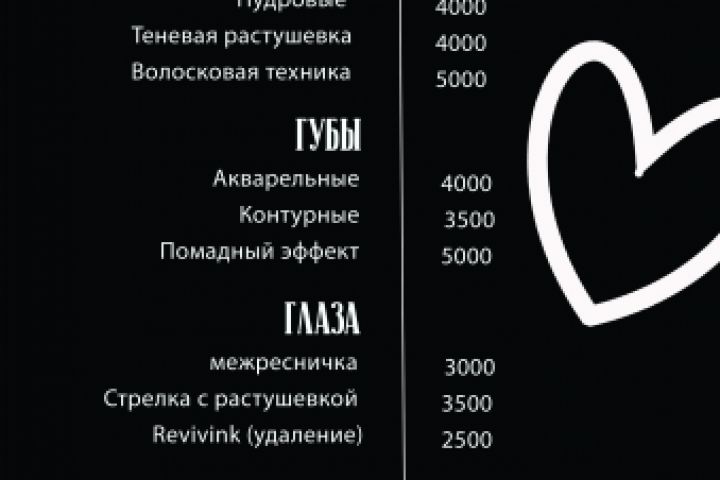 Прайс лист был разработан вместе с сертификатом и визитками для мастера перманентного макияжа.