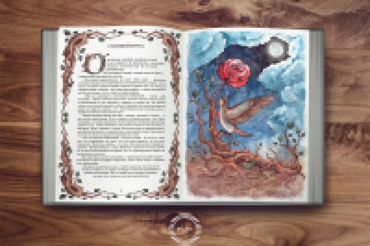 Иллюстрация, виньетка и буквица к рассказу Оскара Уальда "Соловей и роза", созданы с помощью акварели и лайнера