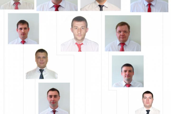 Фотографии, предоставленные Заказчиком (сделанные в разных условиях), приведены к единому стандарту — так, чтобы на одной странице альбома (в электронном виде) они выглядели однотипными, с одинаковым фоном и освещением, одного размера, одинаково чёткие. Для этого (кроме масштабирования, кадрирования и корректировки резкости) была проведена цвето-тоновая коррекция, обтравка и (там, где нужно) изменено освещение лиц.