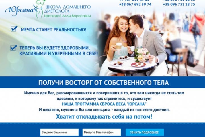 Юрсана одностраничный сайт по правильному питанию