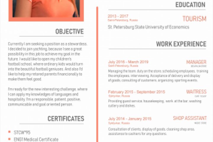 Резюме для стюардессы на английском