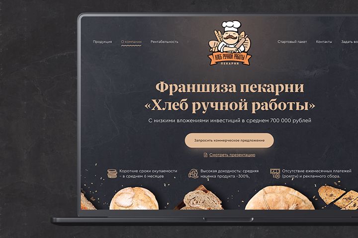 Хлеб ручной работы - франшиза пекарни. Затраченное время: 7 дней Смотреть сайт pekardom.ru Что сделано: - Структура и логика сайта - Дизайн сайта и логотип - Анимация сайта