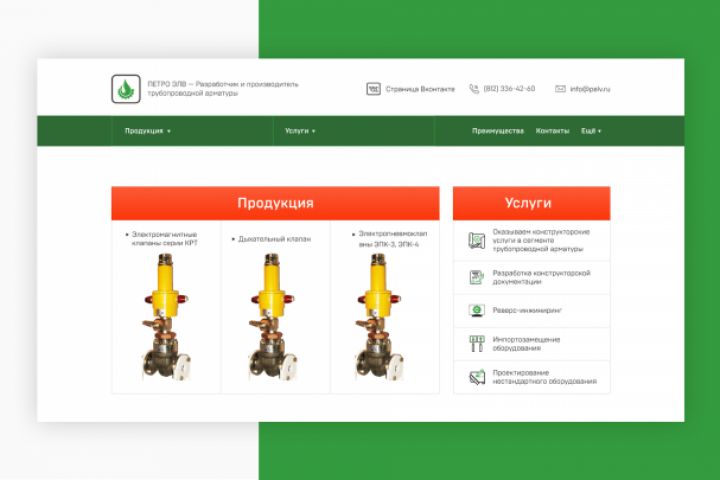 Главный экран для производителя трубопроводной арматуры