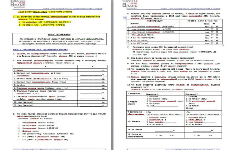 Исследование розничного потребления моторных топлив предприятиями, г. Львов и Львовская обл., 2010