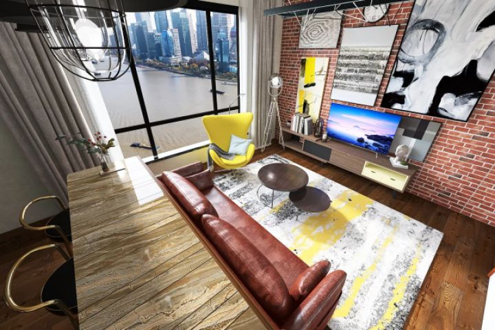Дизайн-проект кухни-гостиной в стиле лофт.