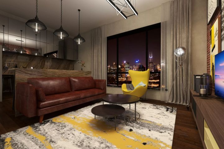 Дизайн-проект кухни-гостиной в стиле лофт.