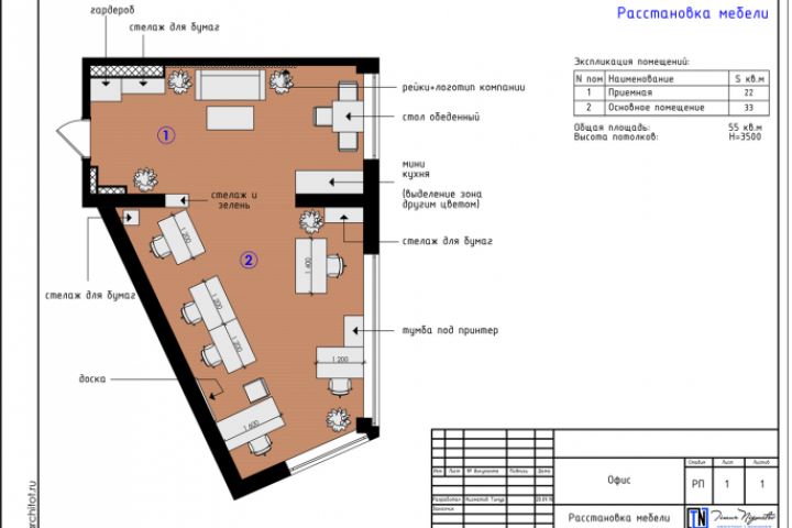 Расстановка мебели Лофт офиса